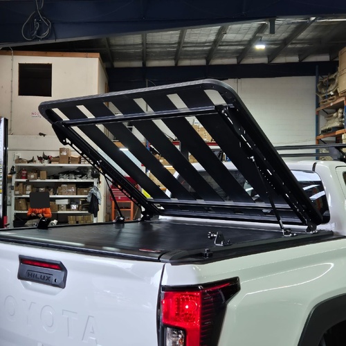Upgrade your roller shutter setup with a Gas Strut Tub Load Rack designed for serious touring, worksite use and everyday practicality. Built to sit directly on top of your roller shutter, this system gives you the best of both worlds — secure under-cover storage and heavy-duty load carrying up top.