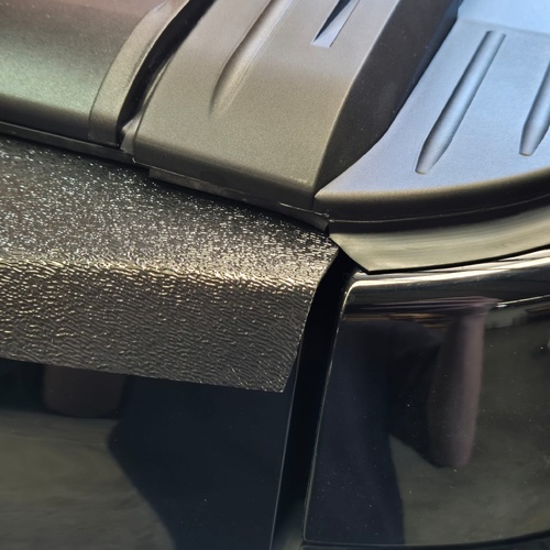 • Matte black tailgate top edge cover for protection and style